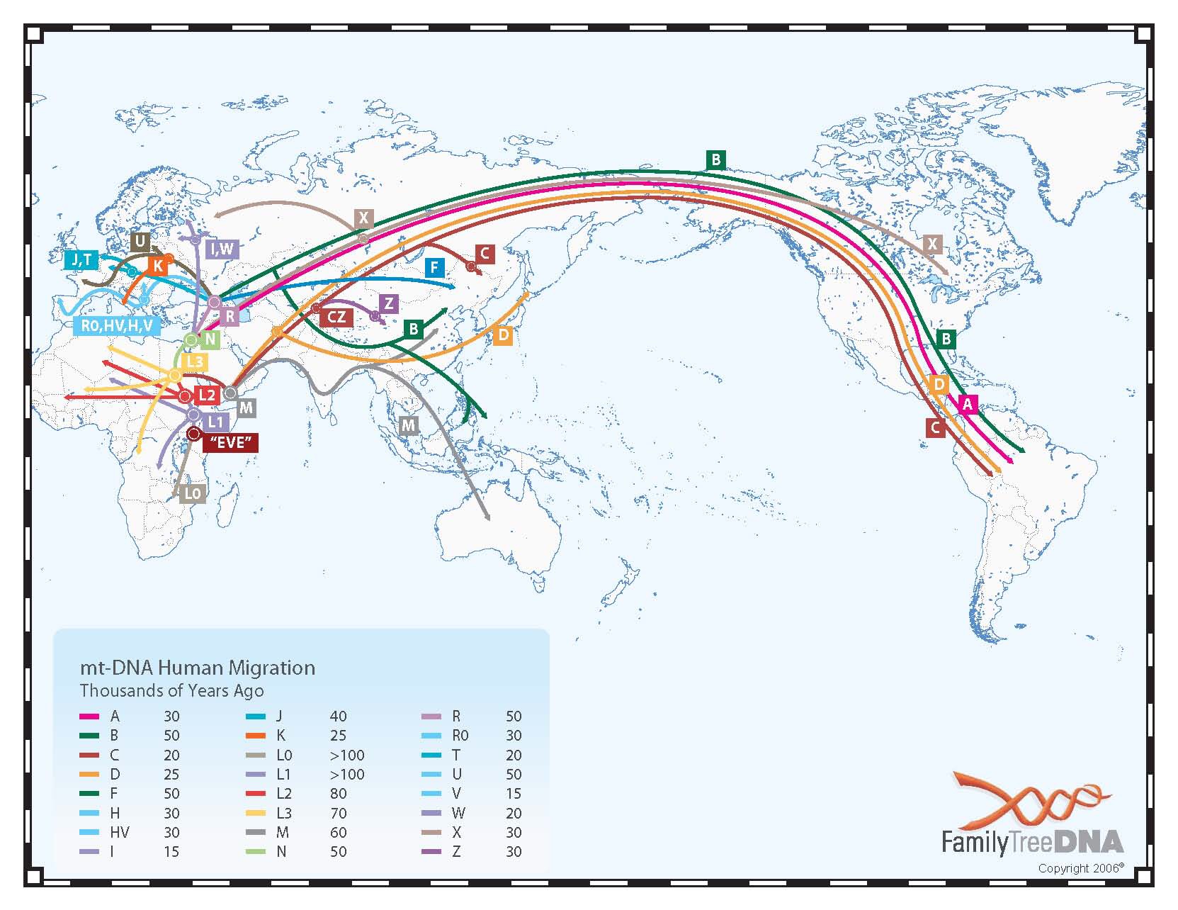Over time, Eve’s offspring began to migrate outside of this part of Africa. With time particular mutations happened within the mtDNA resulting in subgroups. With these subgroups, it’s possible to trace your maternal lines to different parts of the world.