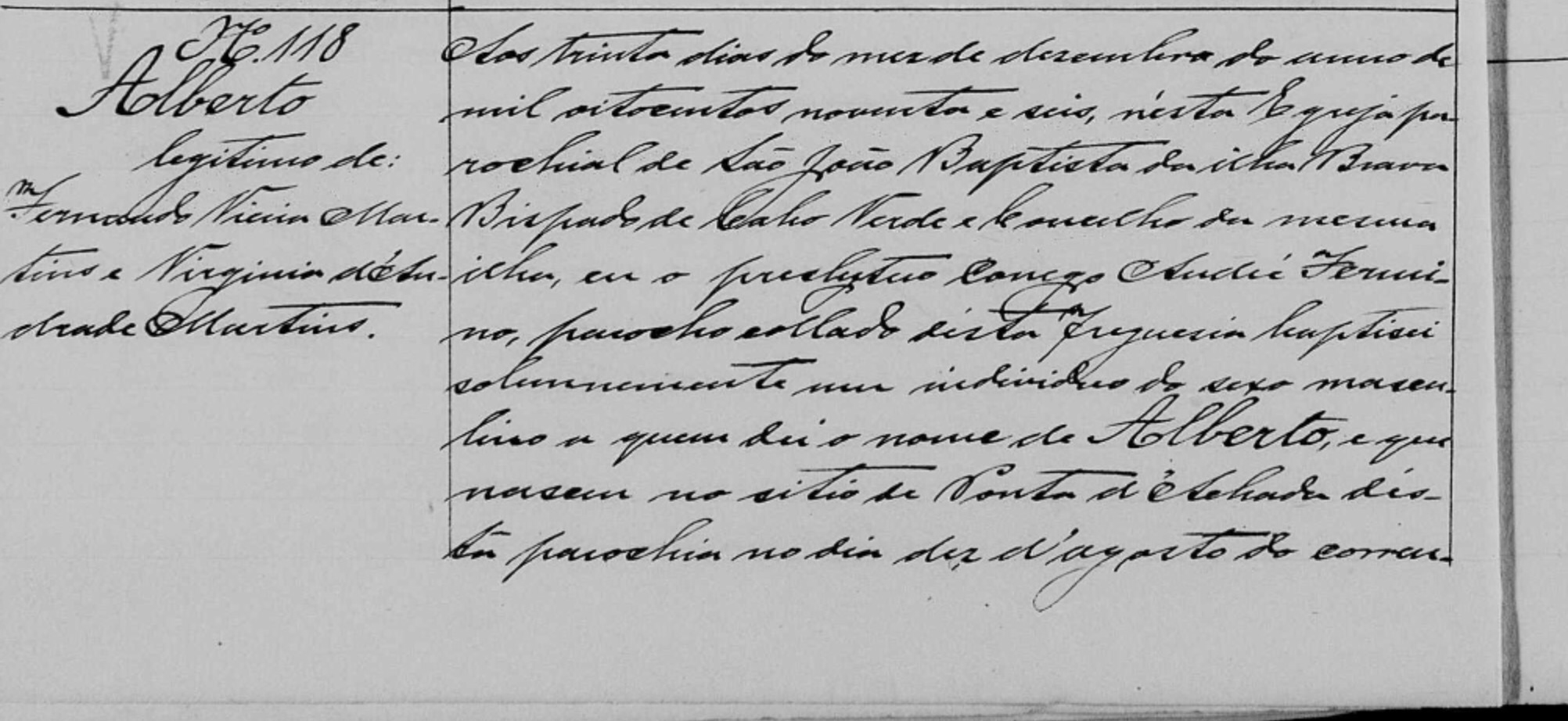In my previous post, Bibi Had A Secret, I mentioned that I hadn’t been able to find and “Alberto” in vital records from Brava… Until now!!!!